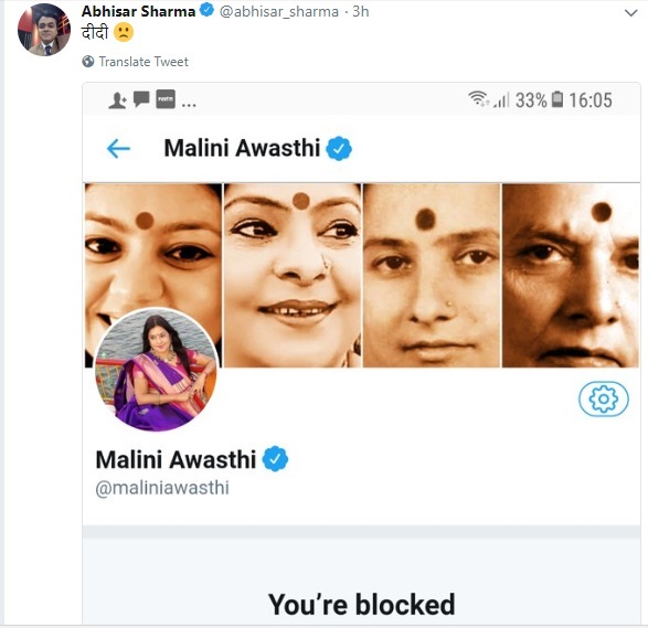 वहीं इसी ट्वीट के बाद अभिसार शर्मा एक के बाद एक दो पोस्ट लिखे और मालिनी अवस्थी पर सवालों की बौछार कर दी, जिसके बाद मालिनी ने उन्हें ब्लॉक कर दिया। वरिष्ठ टीवी पत्रकार अभिसार शर्मा ने उनके ट्वीट पर नाराजगी व्यक्त करते हुए फेसबुक पर जो पोस्ट लिखी, वो हम आपके साथ शेयर कर रहे हैं...