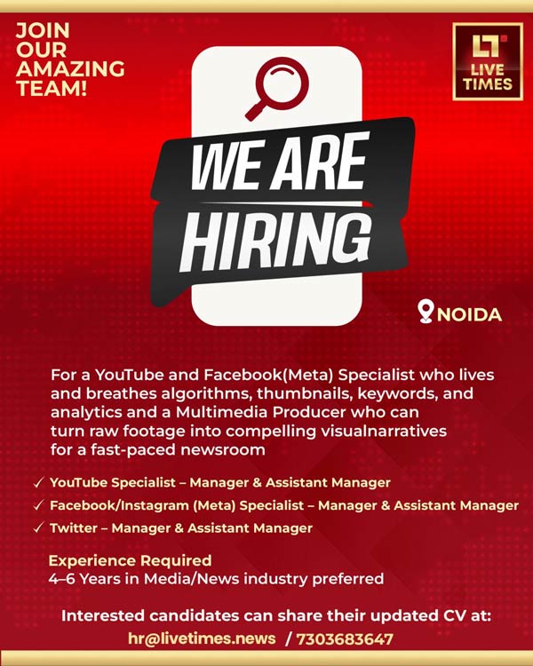 ग्लोबल मल्टीकास्ट न्यूज हब ‘लाइव टाइम्स’ (Live Times) ने सोशल मीडिया टीम के लिए वैकेंसी निकाली है।
